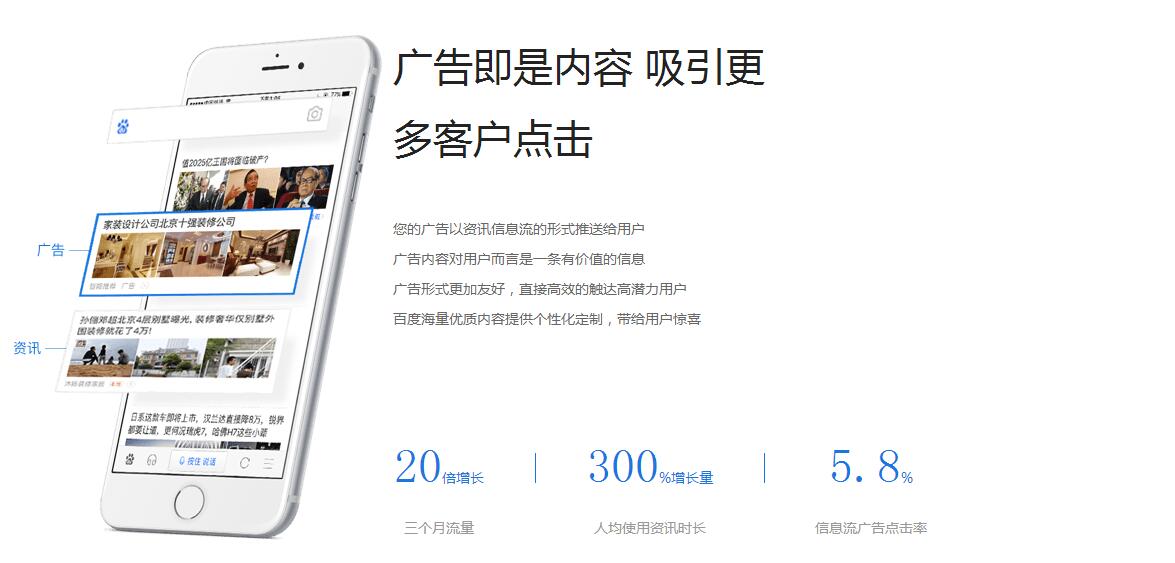 百度信息流广告是指用户看新闻过程中出现的图片文字广告,可以让广告主提供更多的展现和转化机会,最新的查询表明,这是一种将广告成功融入媒体内容的立异。