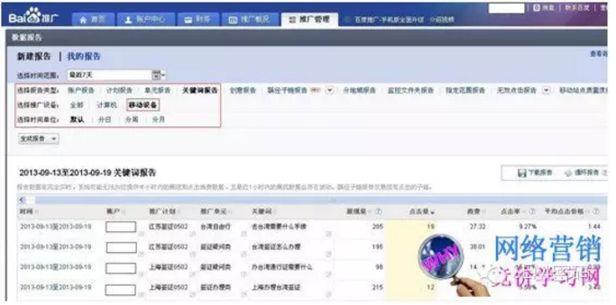 四、优化效果评估:推广报表,百度统计