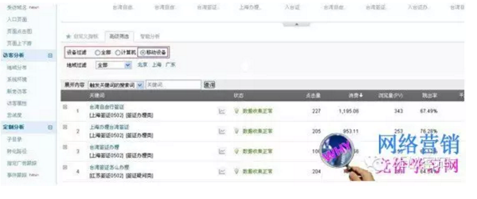 通对百度后台数据分析发现,通过计算机搜索的词有很多高频词,即表达了网民泛泛的需求(如“入台证” “台湾自由行签证”),但通过移动设备搜索的词,中频词明显增加,即多表达的明确而具体的需求(如“去台湾需要什么手续” “台湾签证怎么办理”)由此可见,在做移动推广时我们需重点关注“中段” (中频)词。